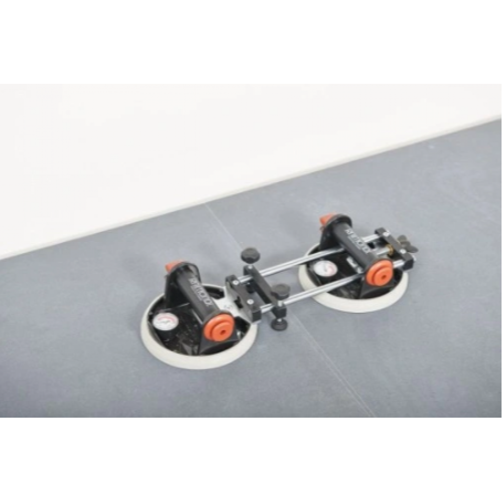 • Wyposażony w 2 przyssawki próżniowe RV175 i średnicy 175mm z niebrudzącą gumą idealna do płytek o gładkiej lub fakturowej powierzchni