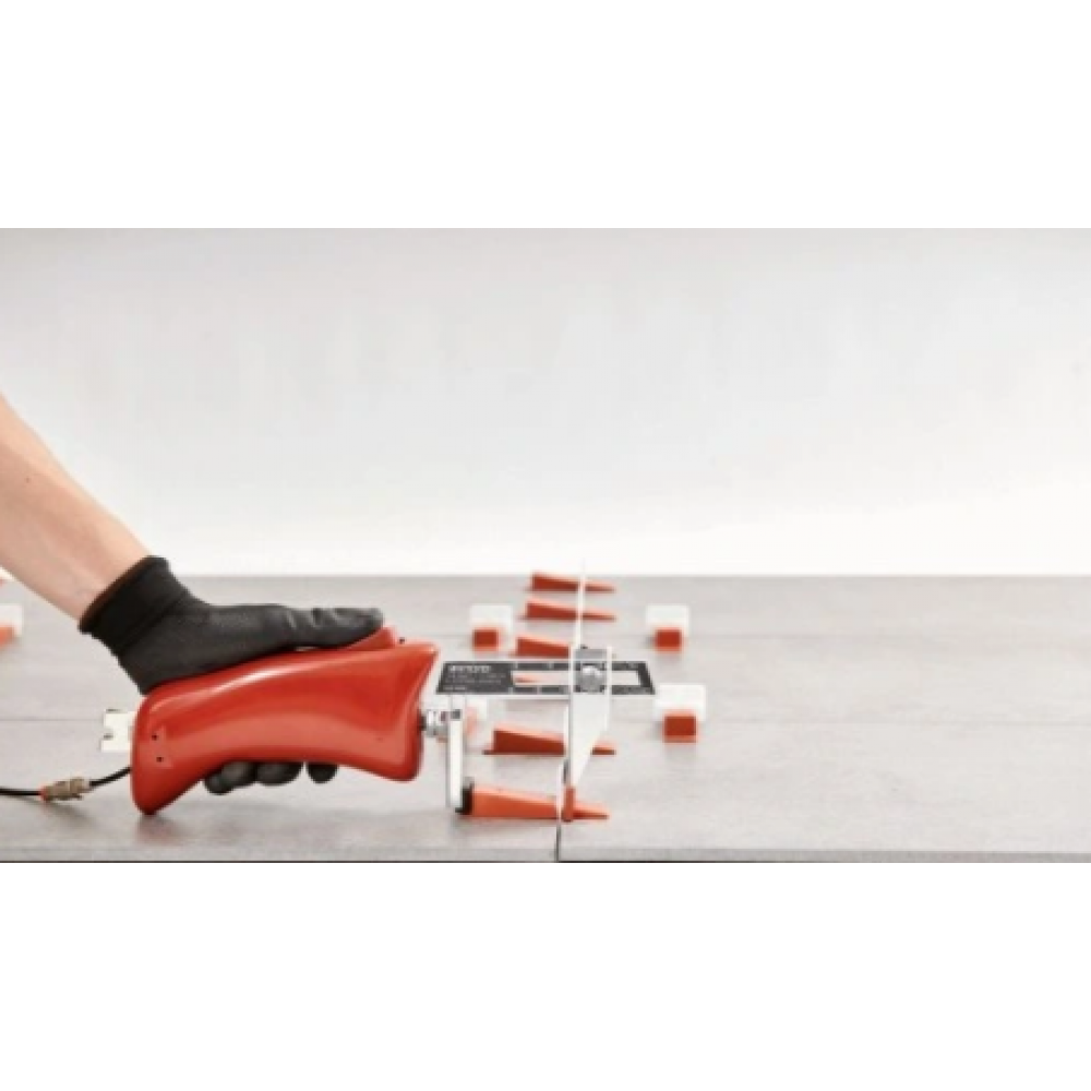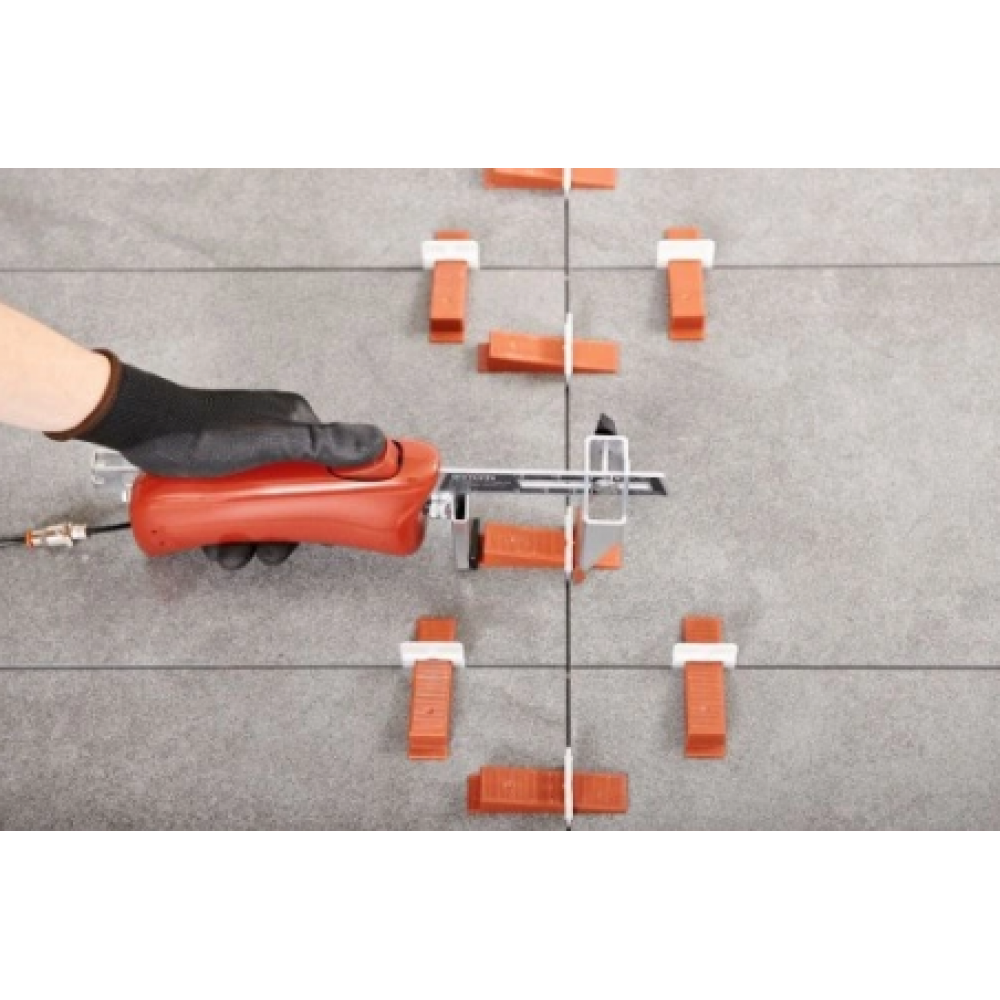 Regulowane szczypce w zależności od grubości instalowanej płytki.  Kalibracja jest prosta, szybka i precyzyjna dzięki bezstopniowemu przed niemu widelcowi milimetrowemu