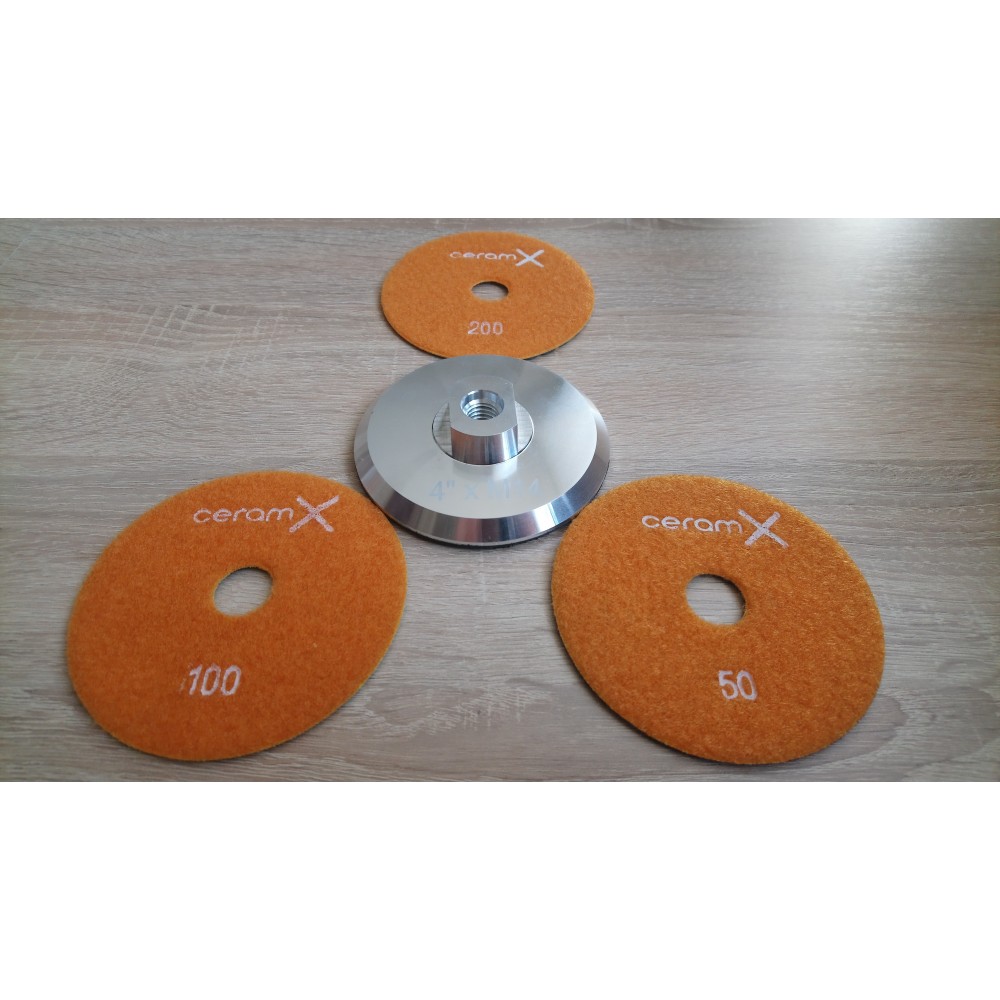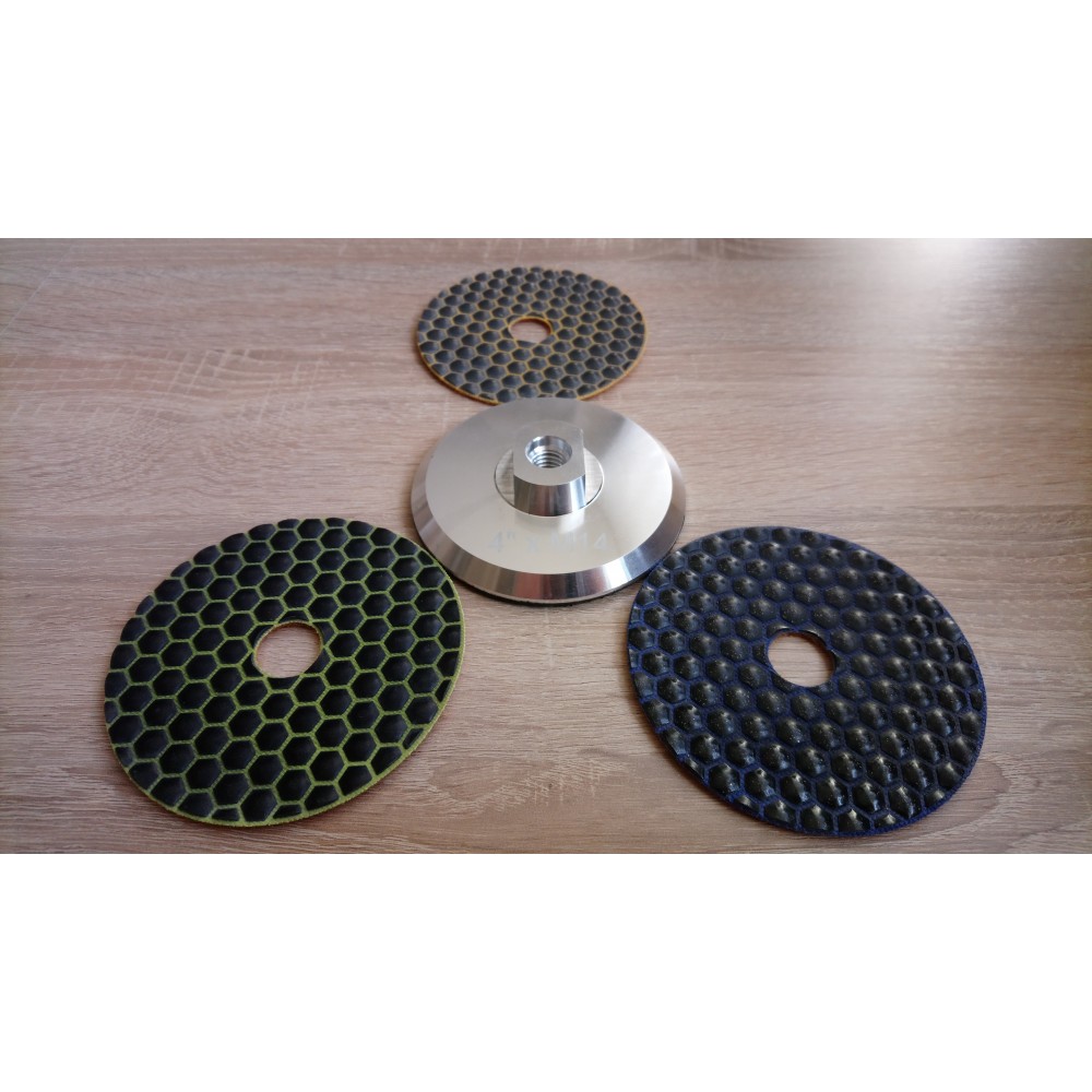 ZESTAW DYSKÓW POLERSKICH DO KAMIENIA 100MM + UCHWYT M14 ALUMINIOWY