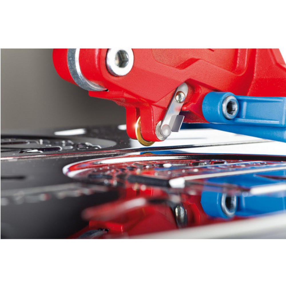 - Podczas cięcia wykorzystywany jest ten sam element tnący zarówno przy wykonywaniu tradycyjnych cięć pod kątem 90° jak i przy cięciach pod innymi kątami – co oznacza, że można wykonywać precyzyjne cięcia, zarówno proste ja i ukośne oraz układać kafelkowe mozaiki.
