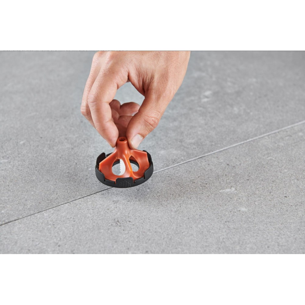 Podkładki do systemu poziomowania RLS VITE pod nakrętki zapobiegają powstawaniu rys na płytkach o delikatnej strukturze.