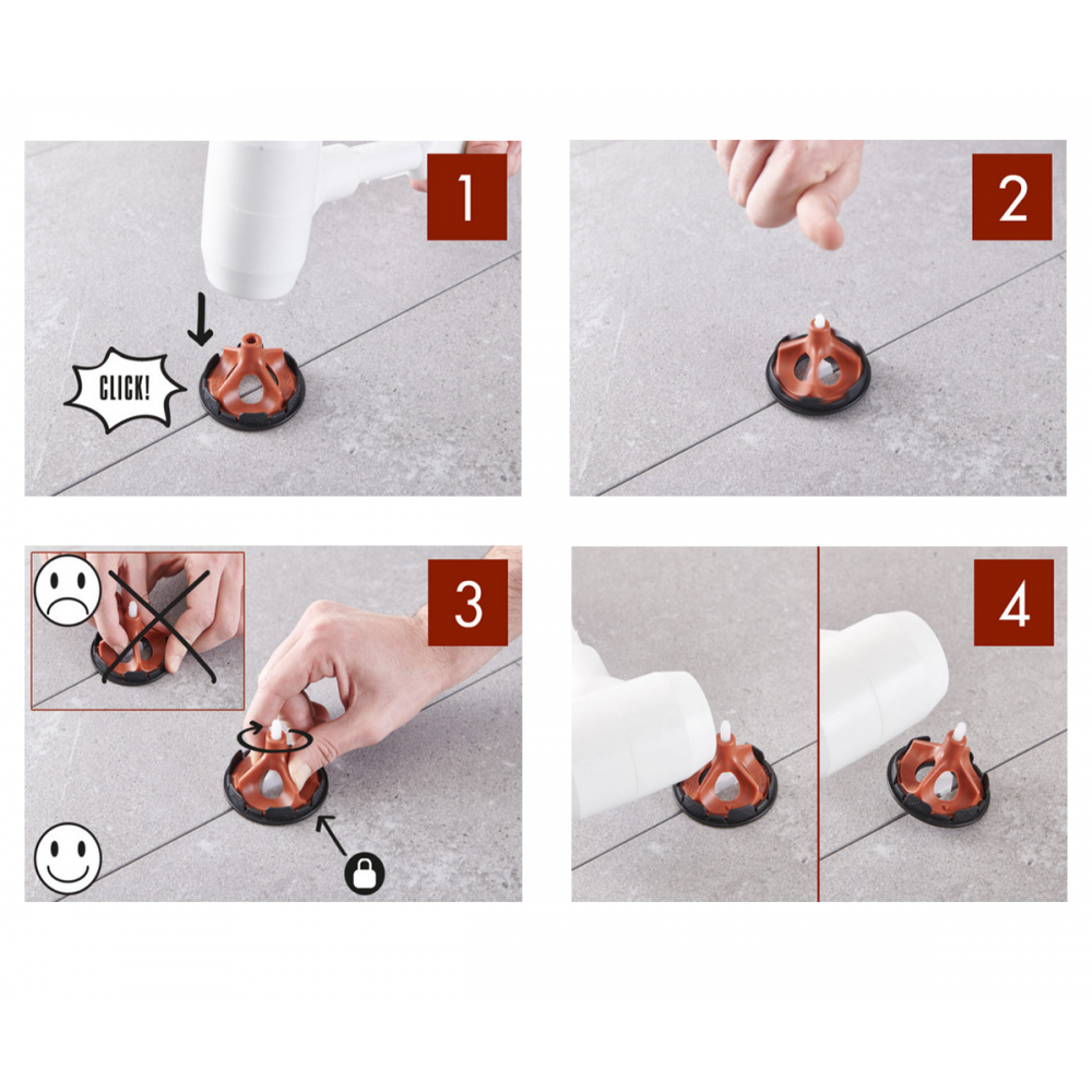 - Podkładka z jednej strony zapobiega ryzyku zarysowania płytek, z drugiej pozwala na dokręcenie nasadki bez konieczności trzymania podkładki ręką