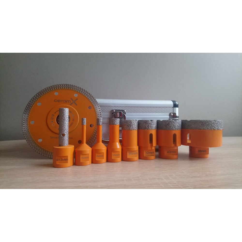 ZESTAW WIERTEŁ KORONOWYCH , OTWORNIC DIAMENTOWYCH CERAM-X 7 szt. w WALIZCE + MEGA GRATIS