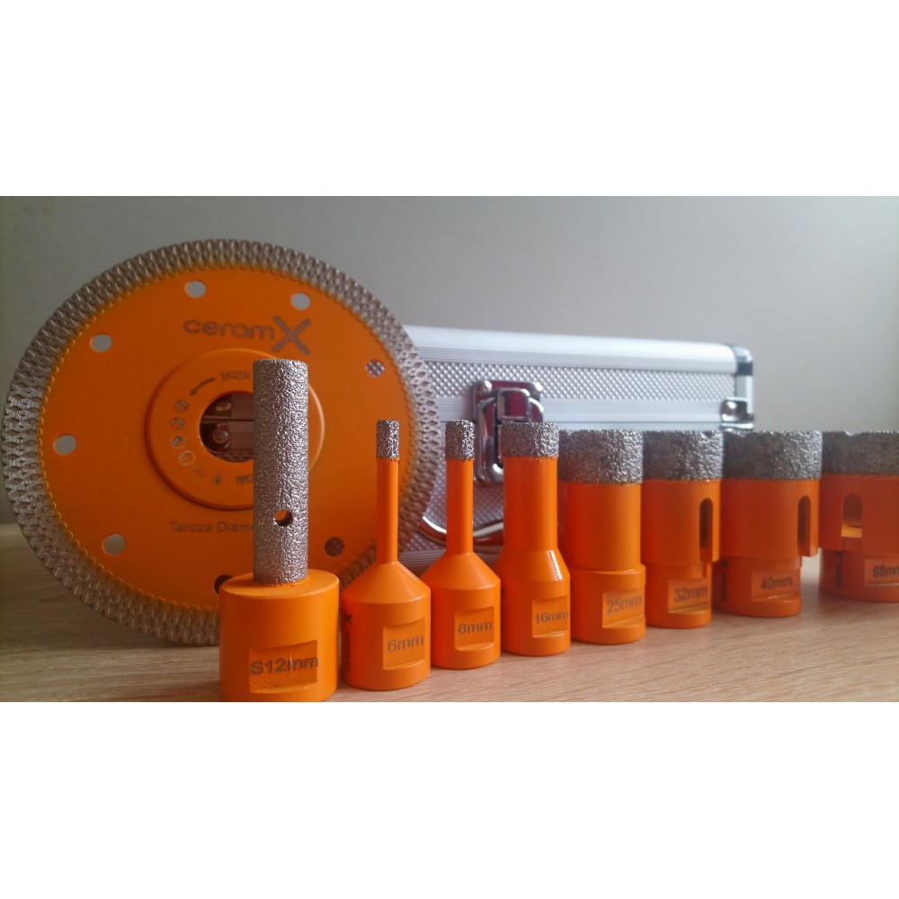 ZESTAW WIERTEŁ DO GRESU CERAM-X 7SZT +TARCZA 125mm + FREZ 12mm